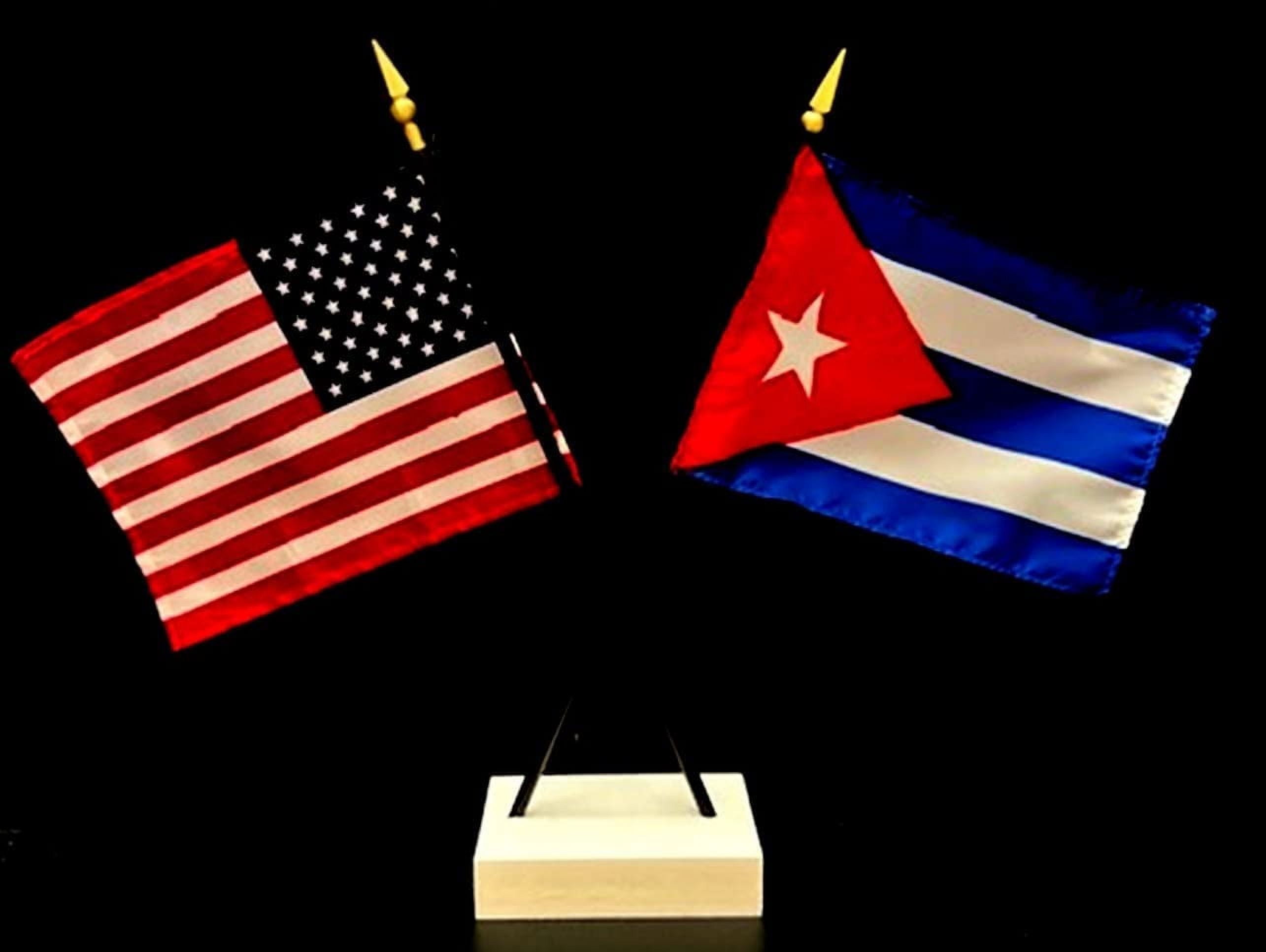 Cuba Desk Flag Set Contains One USA and One Country Flag with a White