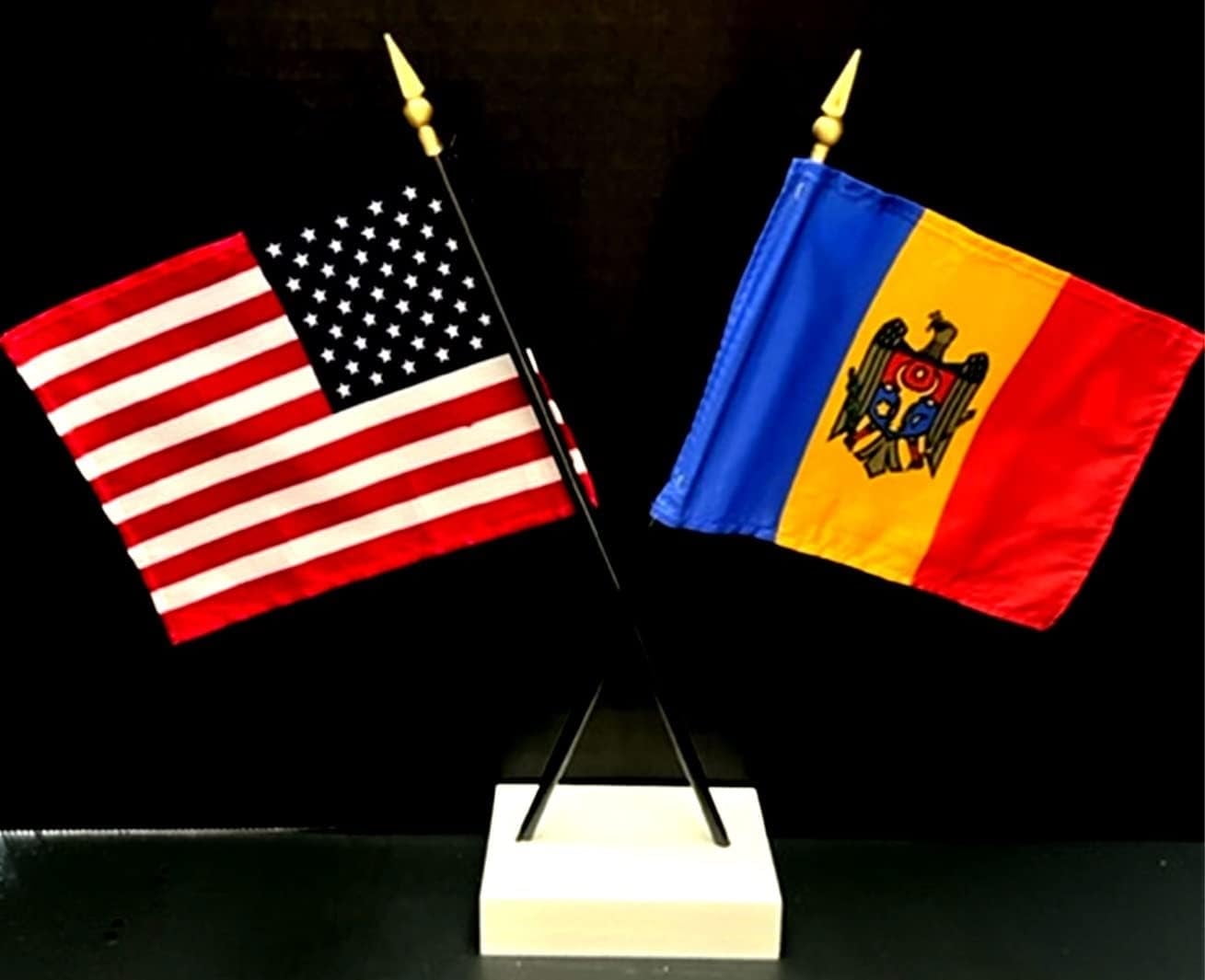 Moldova Desk Flag Set Contains One USA and One Country Flag with a