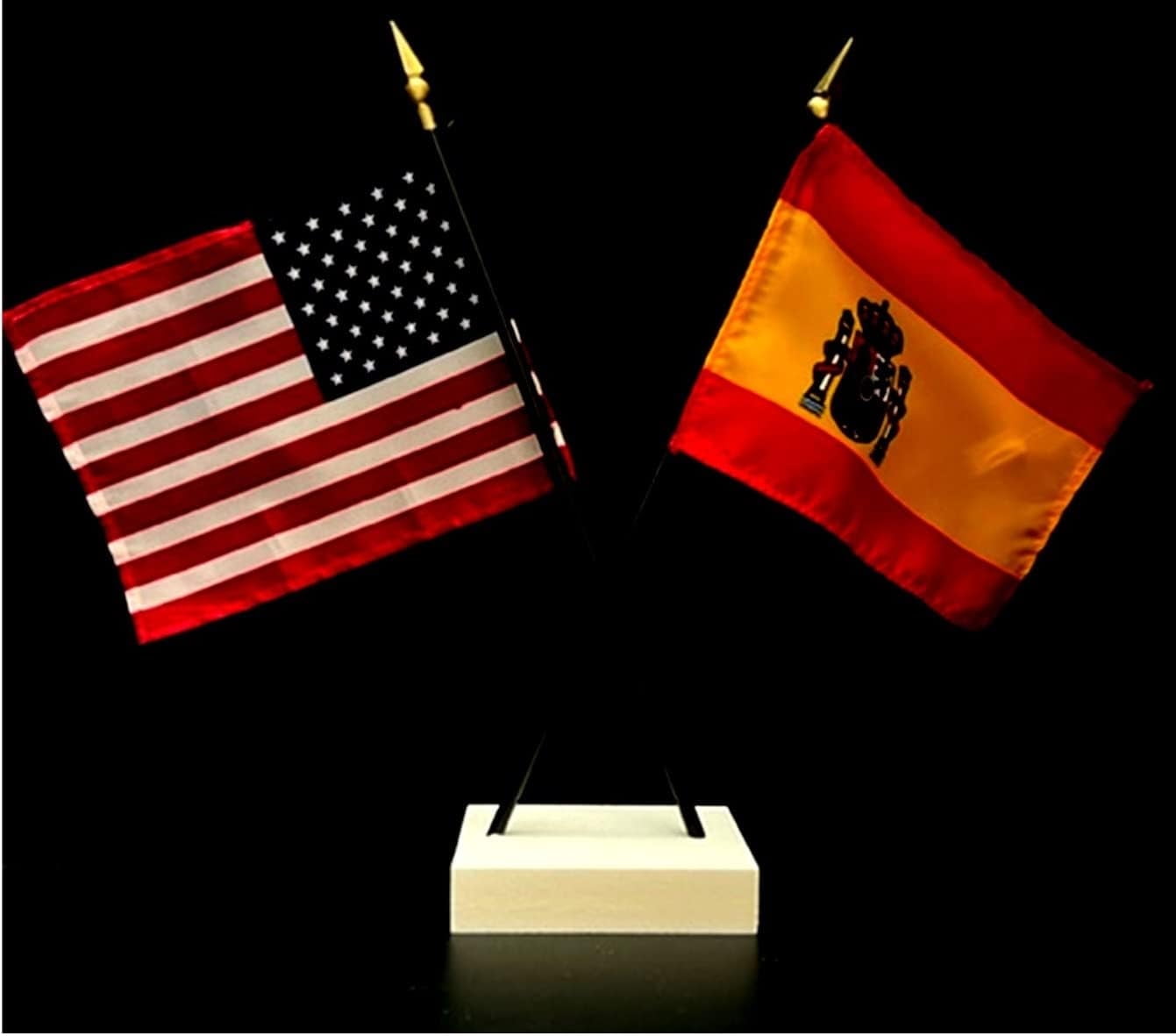 Spain Desk Flag Set Contains One USA and One Country Flag with a White