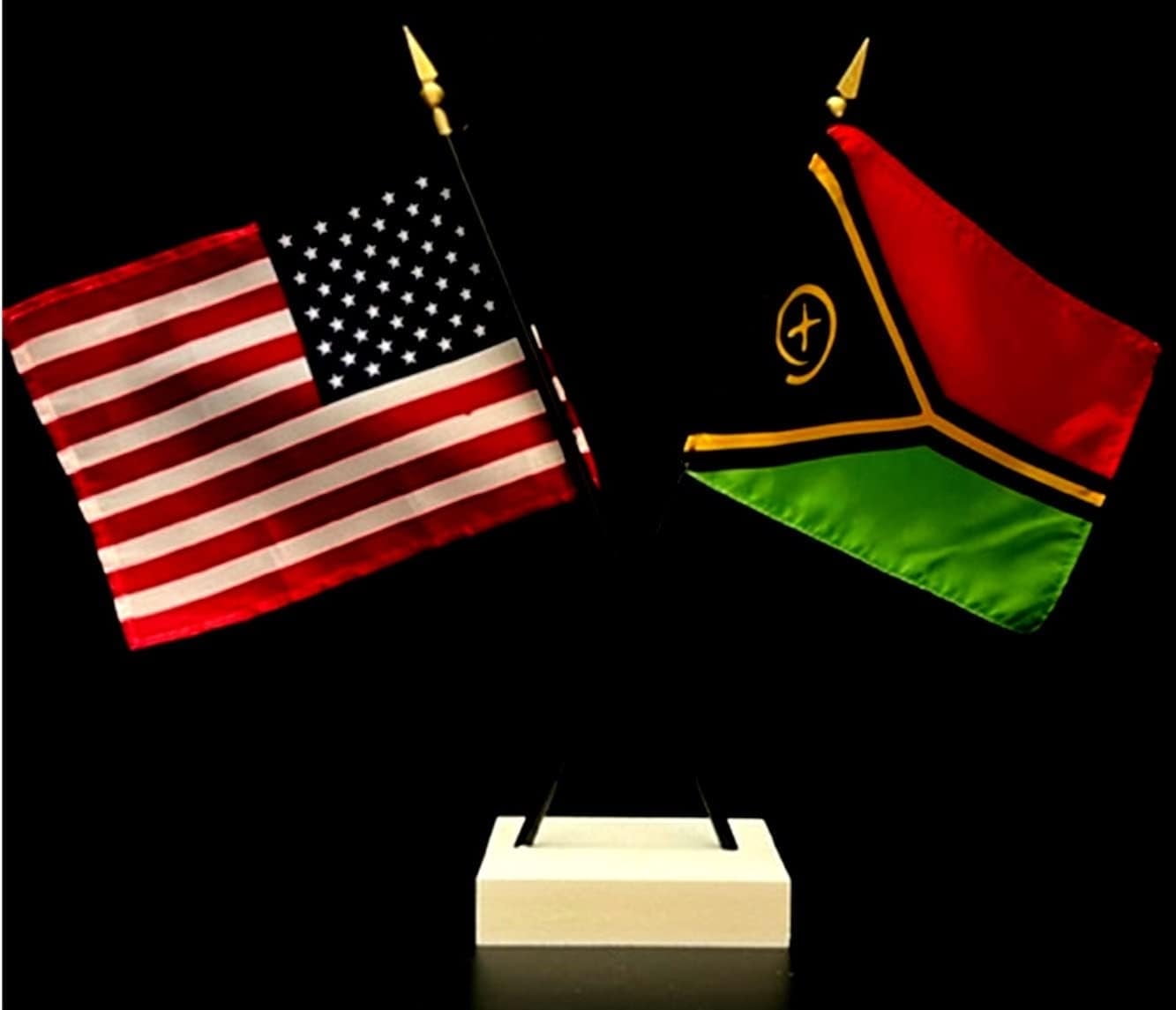 Vanuatu Desk Flag Set Contains One USA and One Country Flag with a