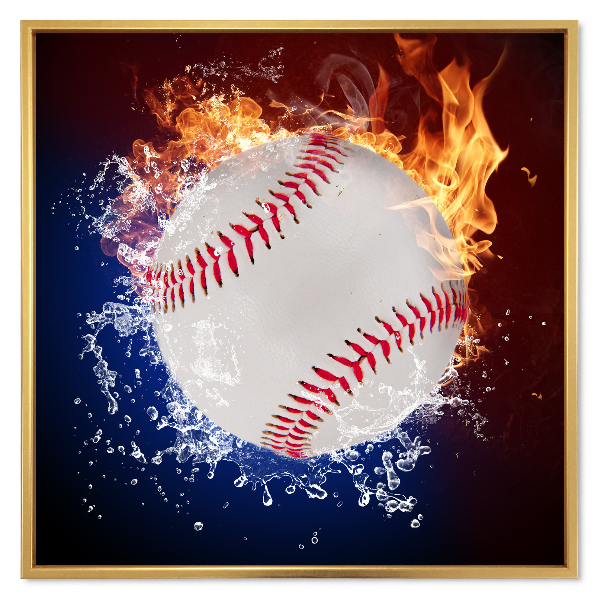 Ebern Designs Baseball Ball In Fire Flames Print on Canvas Wayfair