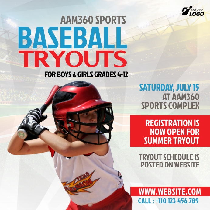 baseball tryouts Template PosterMyWall