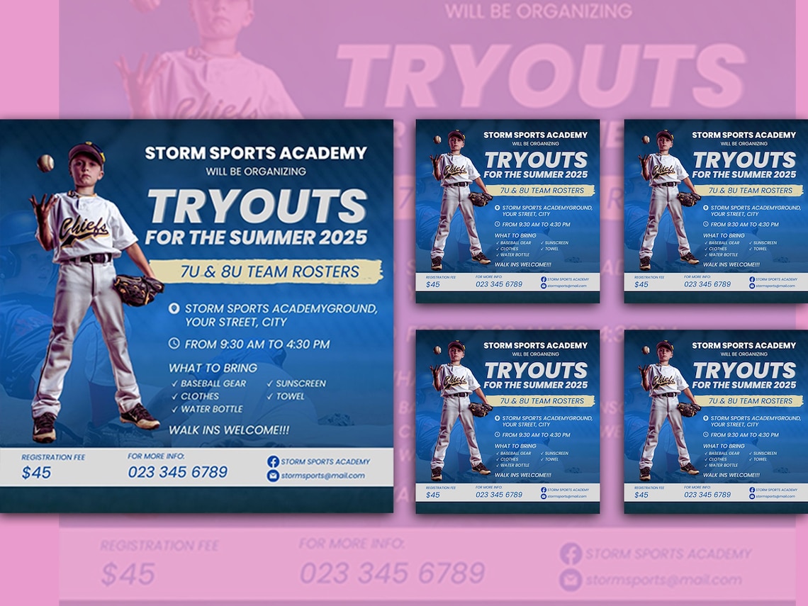 Baseball Tryouts Flyer and Instagram Template Editable Canva Template