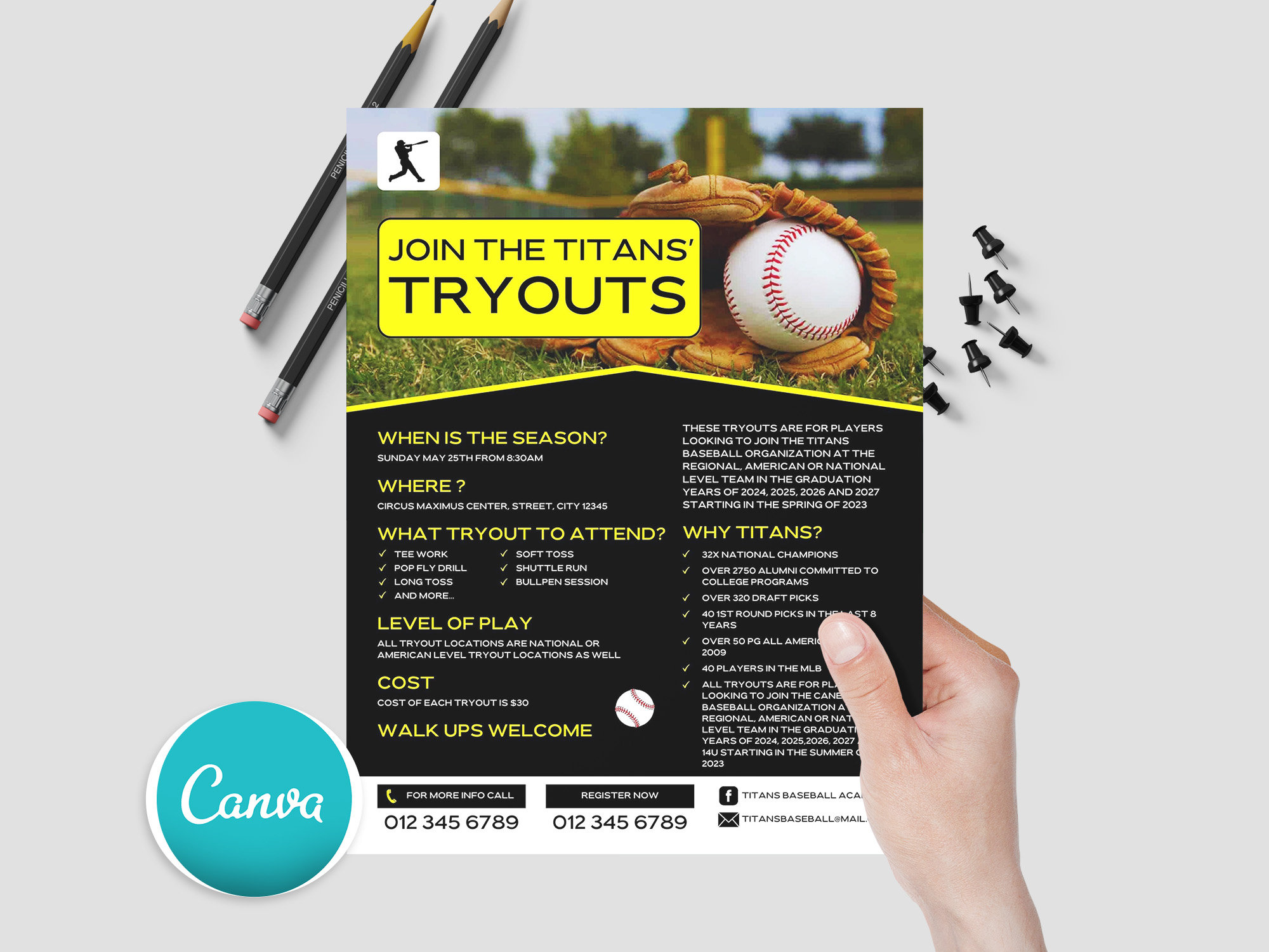 Baseball tryouts flyer design template Artofit