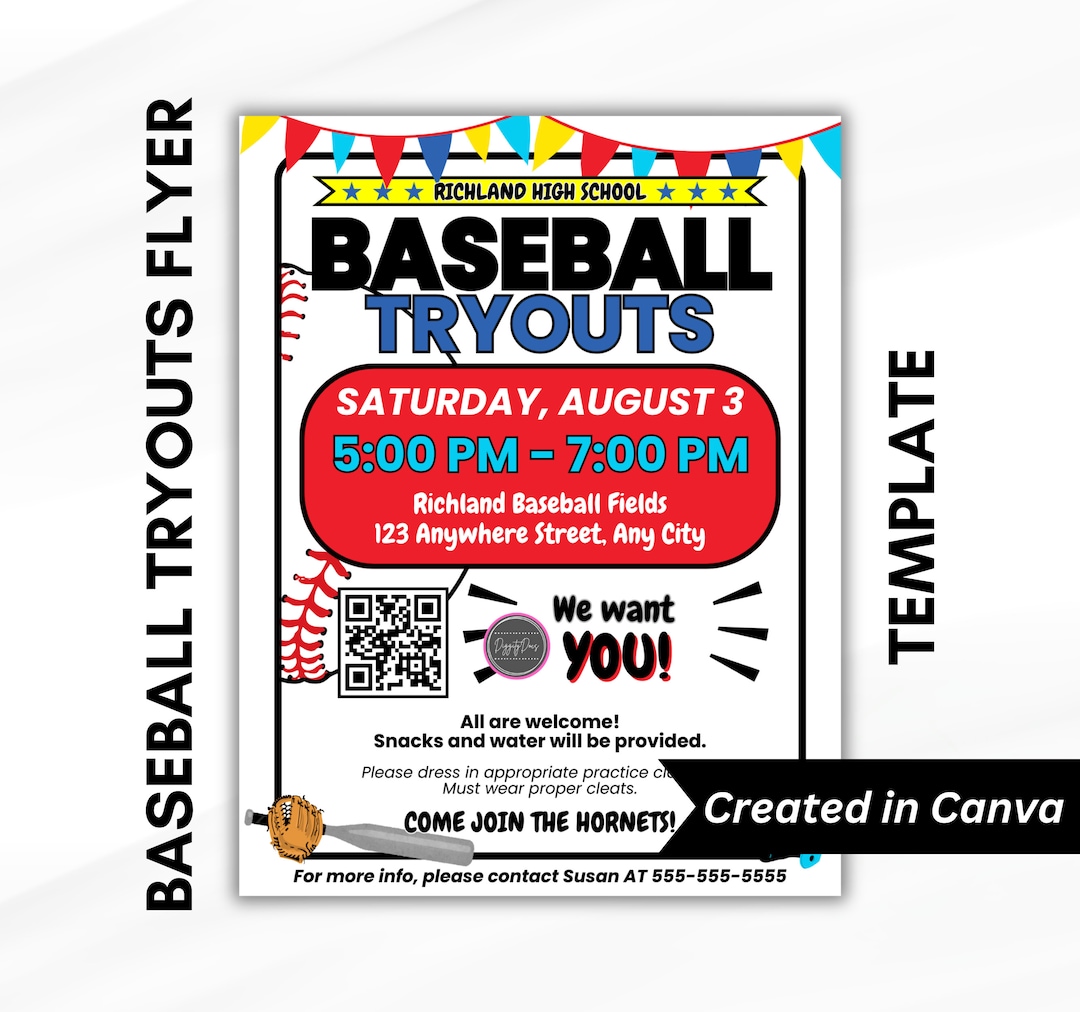 Baseball Tryouts Flyer DIY Canva Baseball Camp Template Etsy