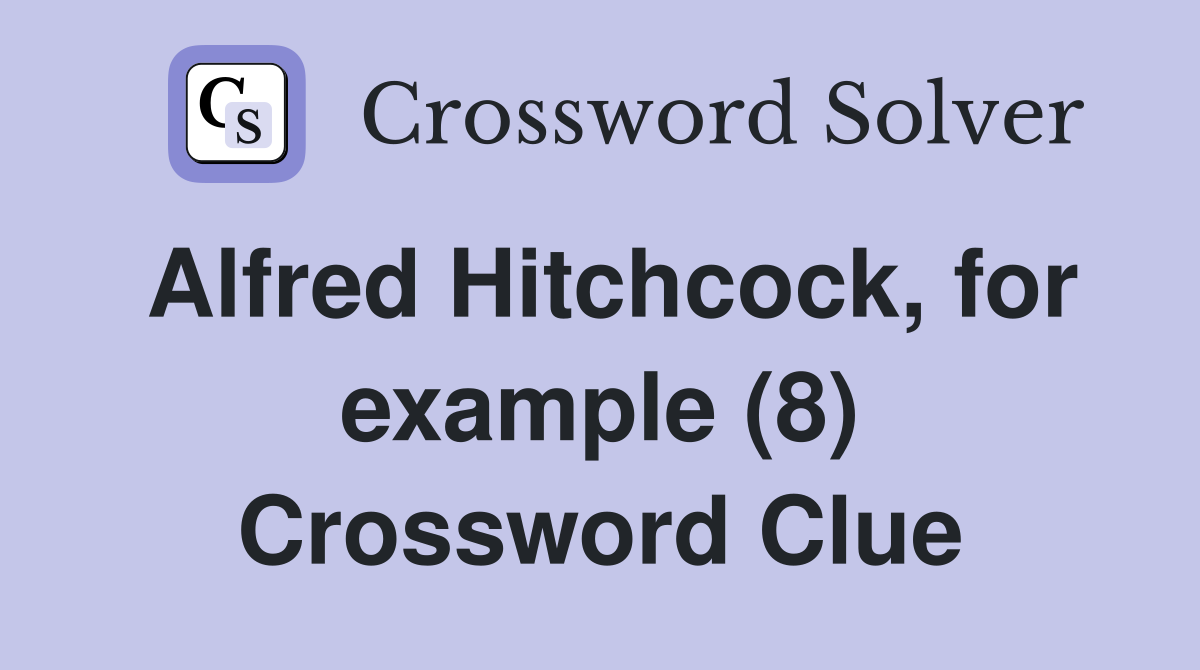 Alfred Hitchcock for example (8) Crossword Clue Answers Crossword