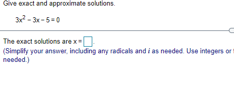 Solved Give exact and approximate solutions 3x2 3x 5 = 0 Chegg com