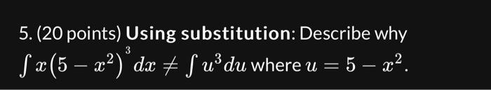 Solved ∫x(5−x2)3dx =∫u3du where u=5−x2 Chegg com