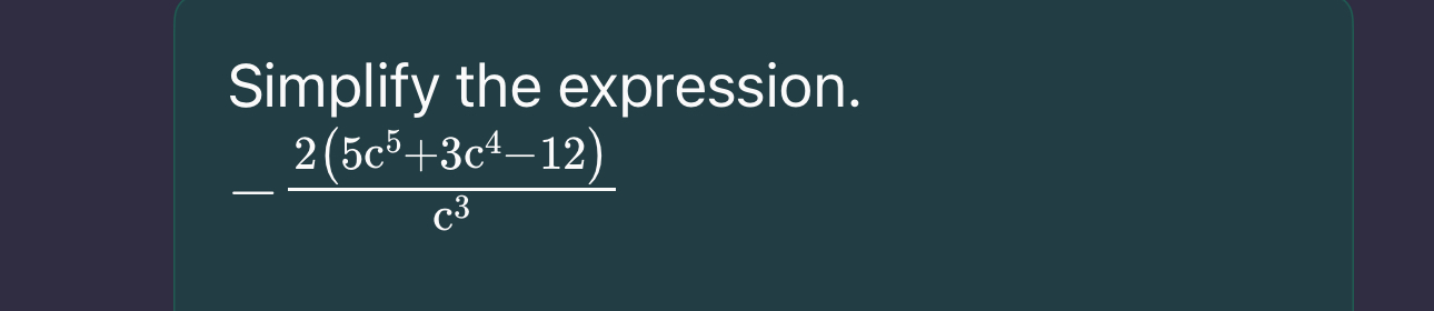 Solved Simplify the expression 2(5c5 3c4 12)c3 Chegg com