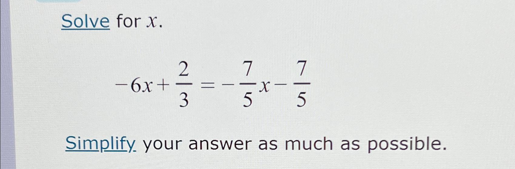 Solved Solve for x 6x 23= 75x 75Simplify your answer as Chegg com