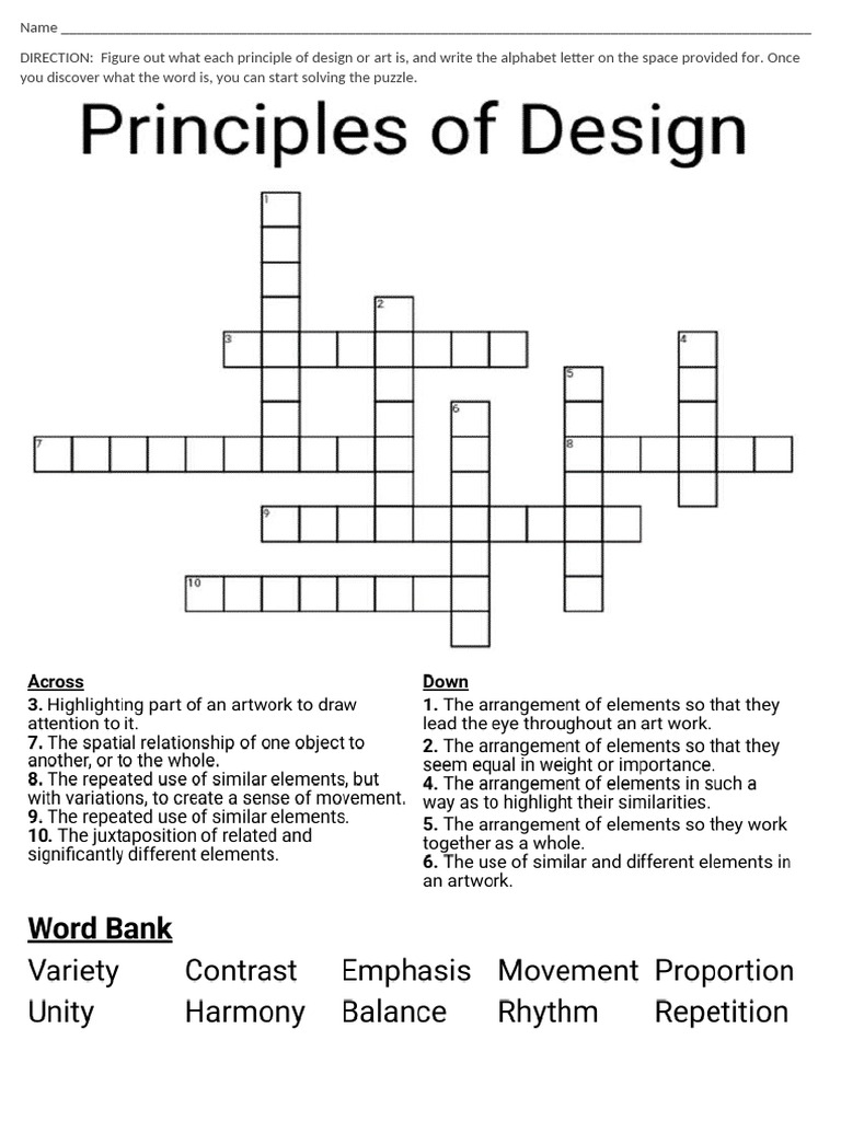 Crossword Puzzle Principle of Art PDF