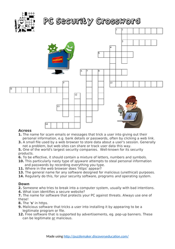 PC Security Crossword ICT Teaching Resources