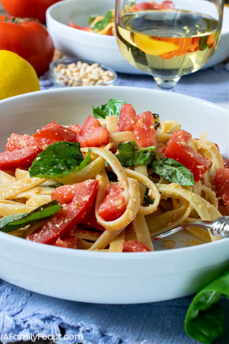 Pasta with Summer Tomatoes Basil Pine Nut Sauce A Family Feast®