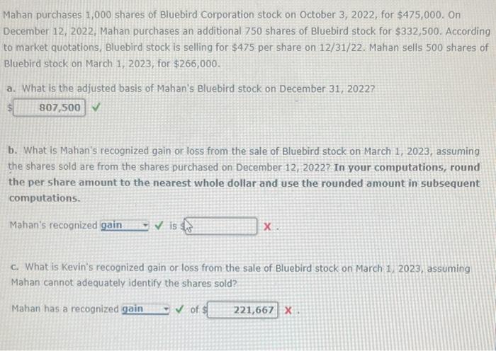 Solved Mahan purchases 1 000 shares of Bluebird Corporation Chegg com