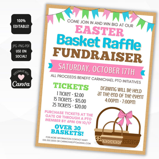 Editable Basket Raffle Flyer Template Fundraiser Invitation (canva) Etsy