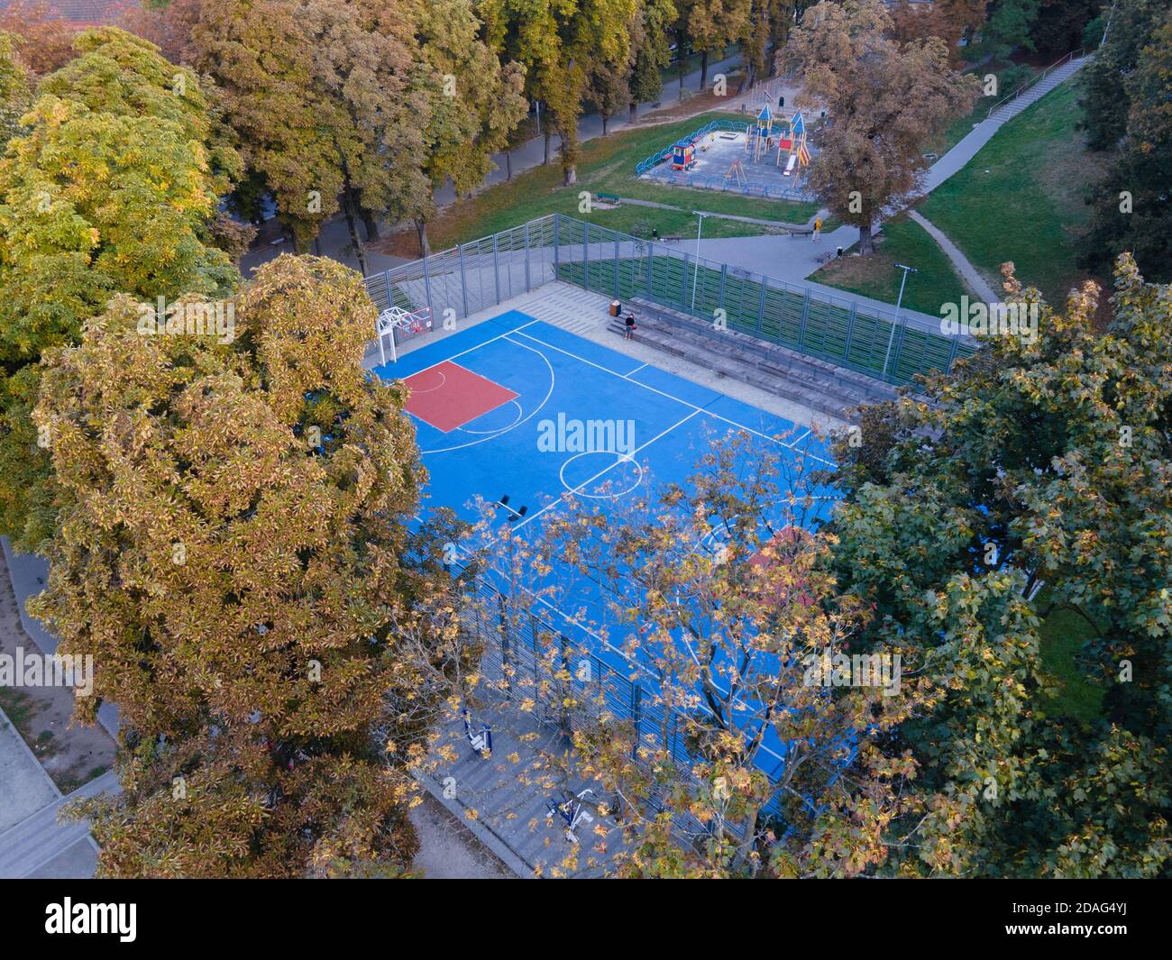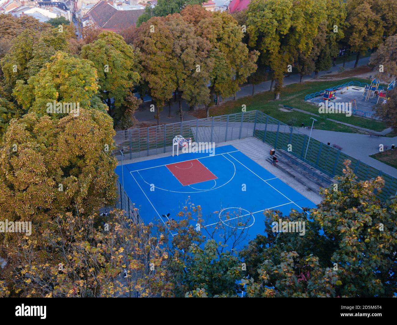 Public Basketball Court Aerial Top View Above empty outdoor Sport