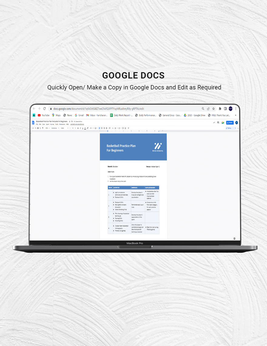 Basketball Practice Plan Template for Beginners in Google Docs Word