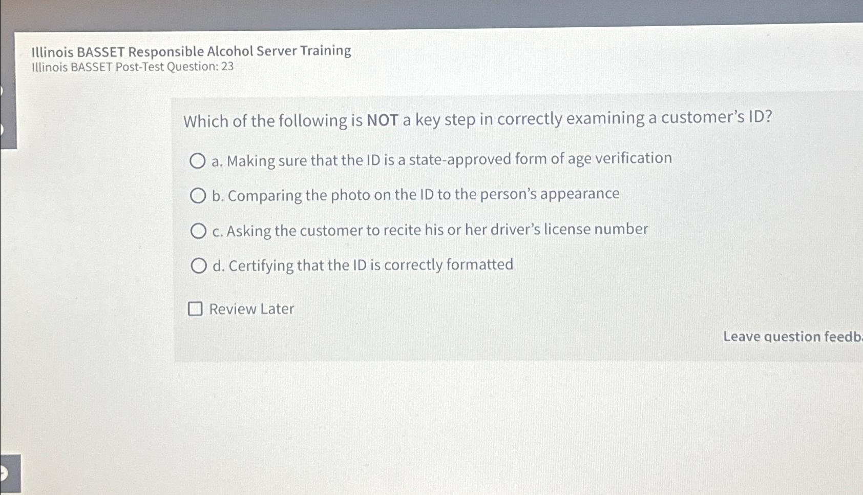 Solved Illinois BASSET Responsible Alcohol Server Chegg com