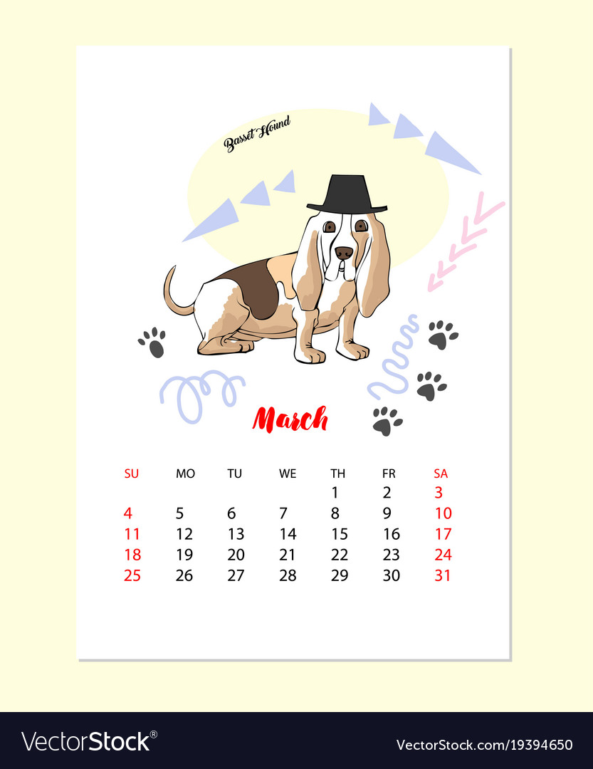 Funny basset hound sketch calendar Royalty Free Vector Image