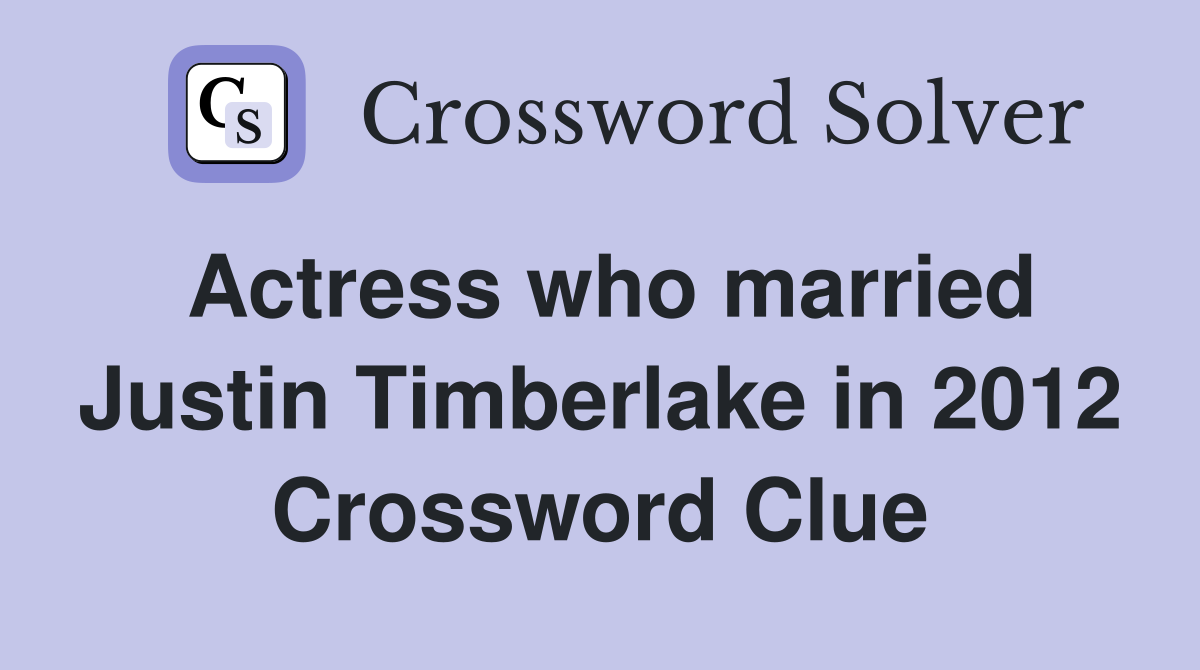 Actress who married Justin Timberlake in 2012 Crossword Clue Answers