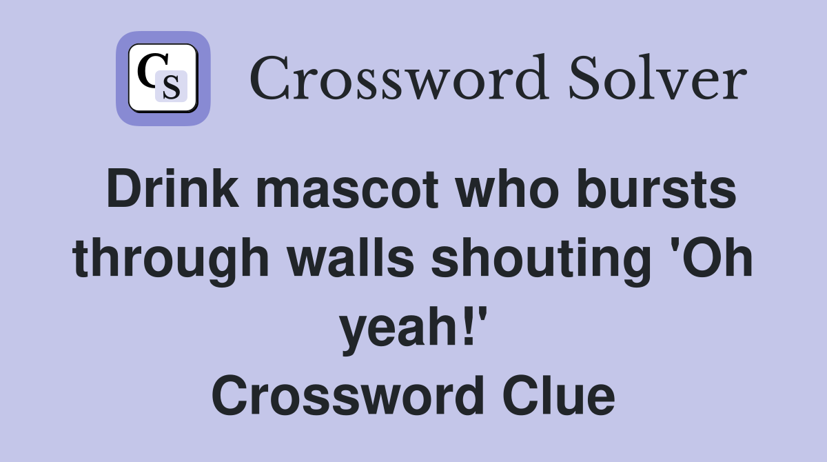 Drink mascot who bursts through walls shouting #39 Oh yeah #39 Crossword