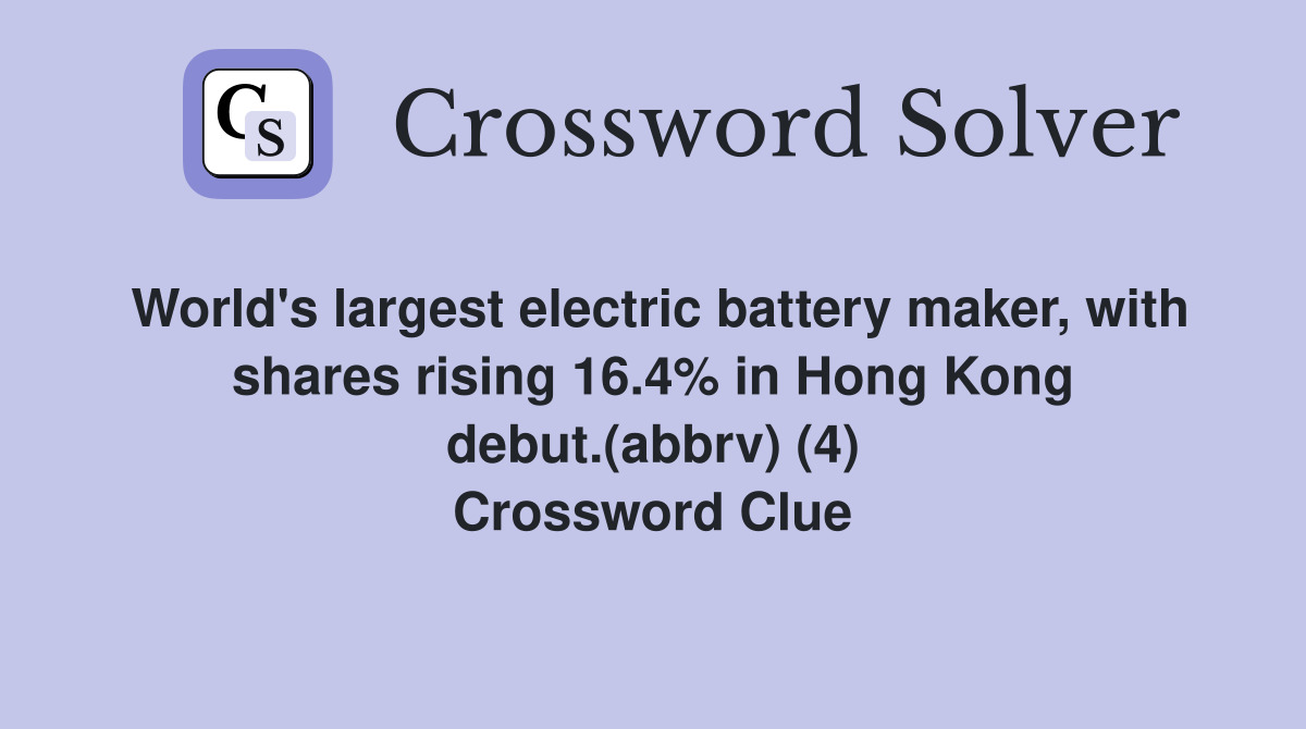 Battery Get Answers for One Clue Crossword Now