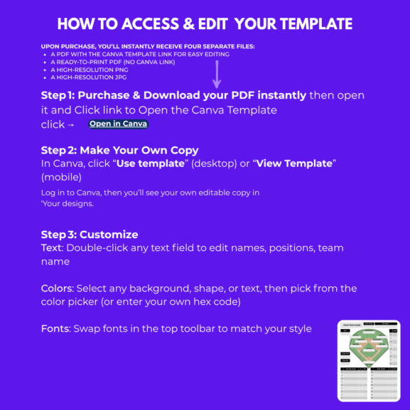 EDITABLE Baseball Lineup Field Position Template Canva Download