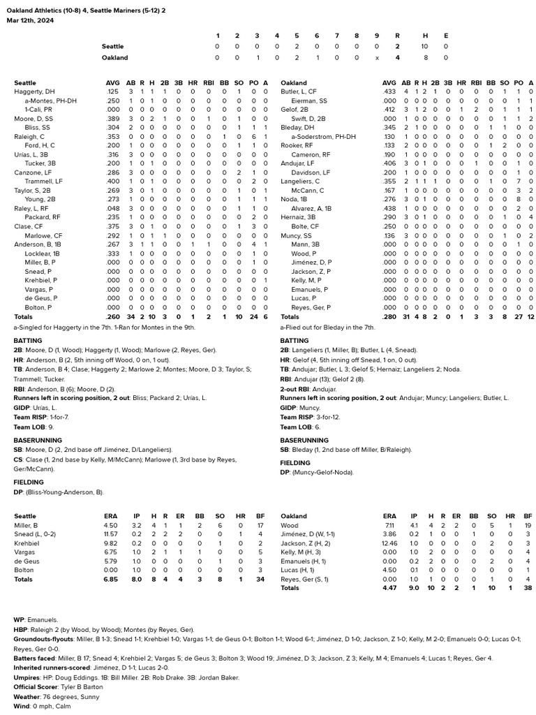03 12 24 Box Score PDF Pitcher Batting (Baseball)