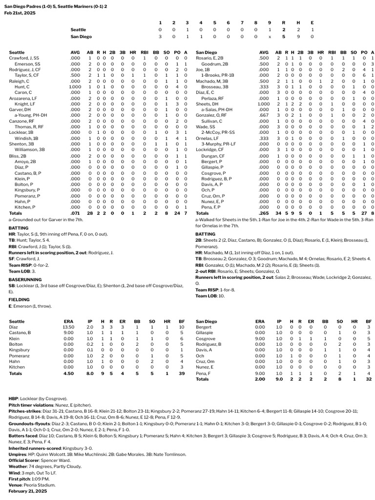 02 21 25 Box Score PDF Batting (Baseball) Pitcher