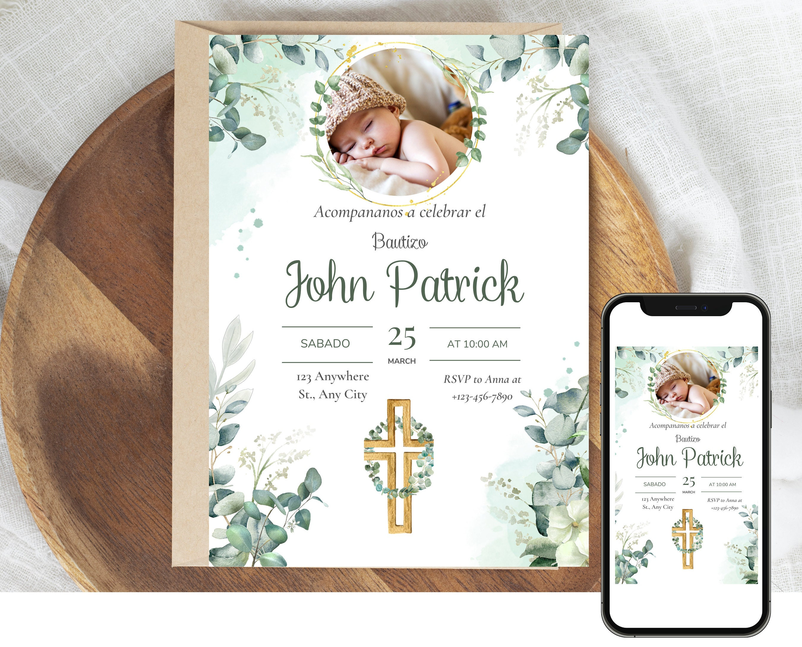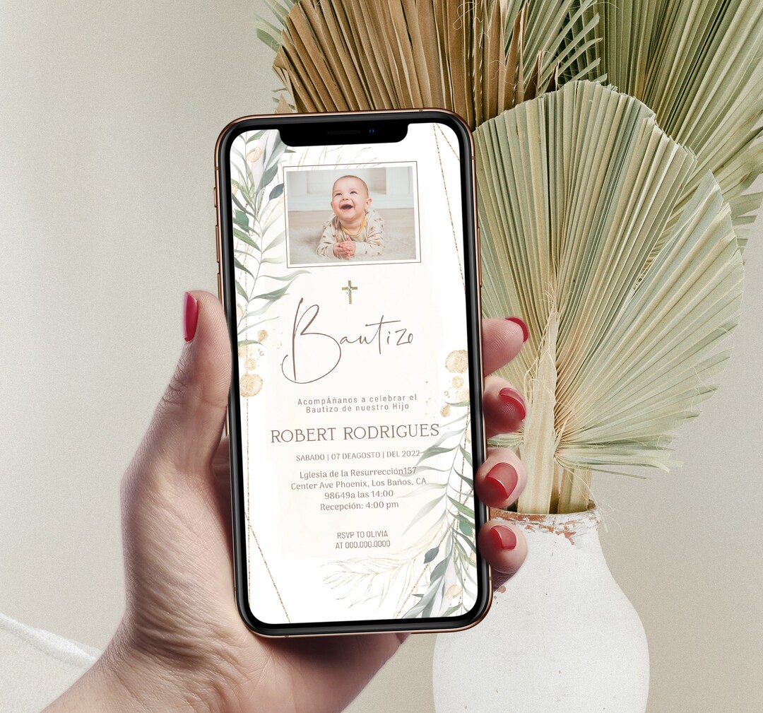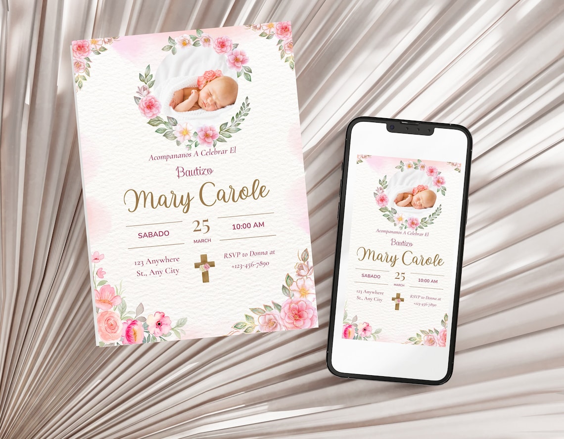 Bautizo Invitations Spanish Template Electronic Baptism Etsy