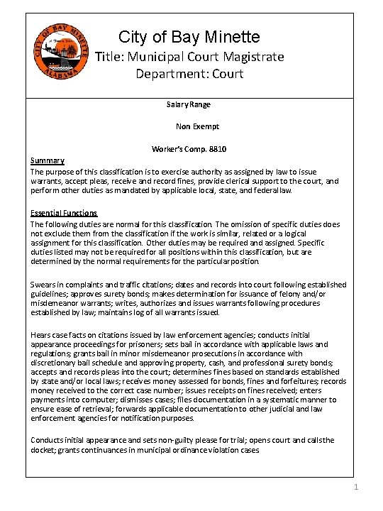 City of Bay Minette Title Municipal Court Magistrate