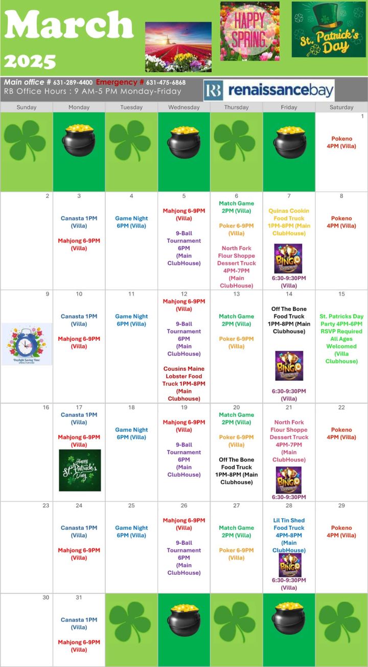 March 2025 Events Calendar Renaissance Bay