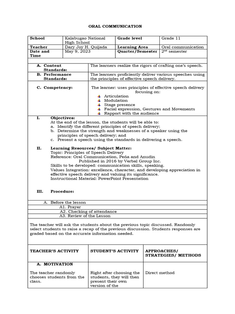 ORAL COMMUNICATION Lesson Plan PDF