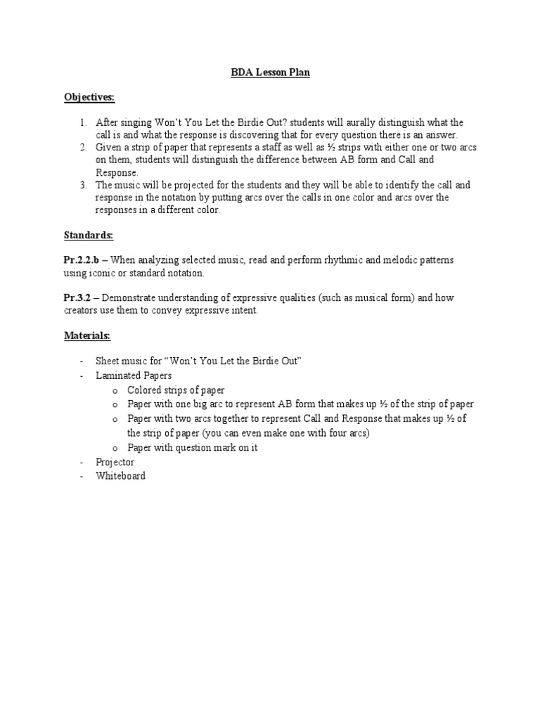 Bda Lesson Plan Template