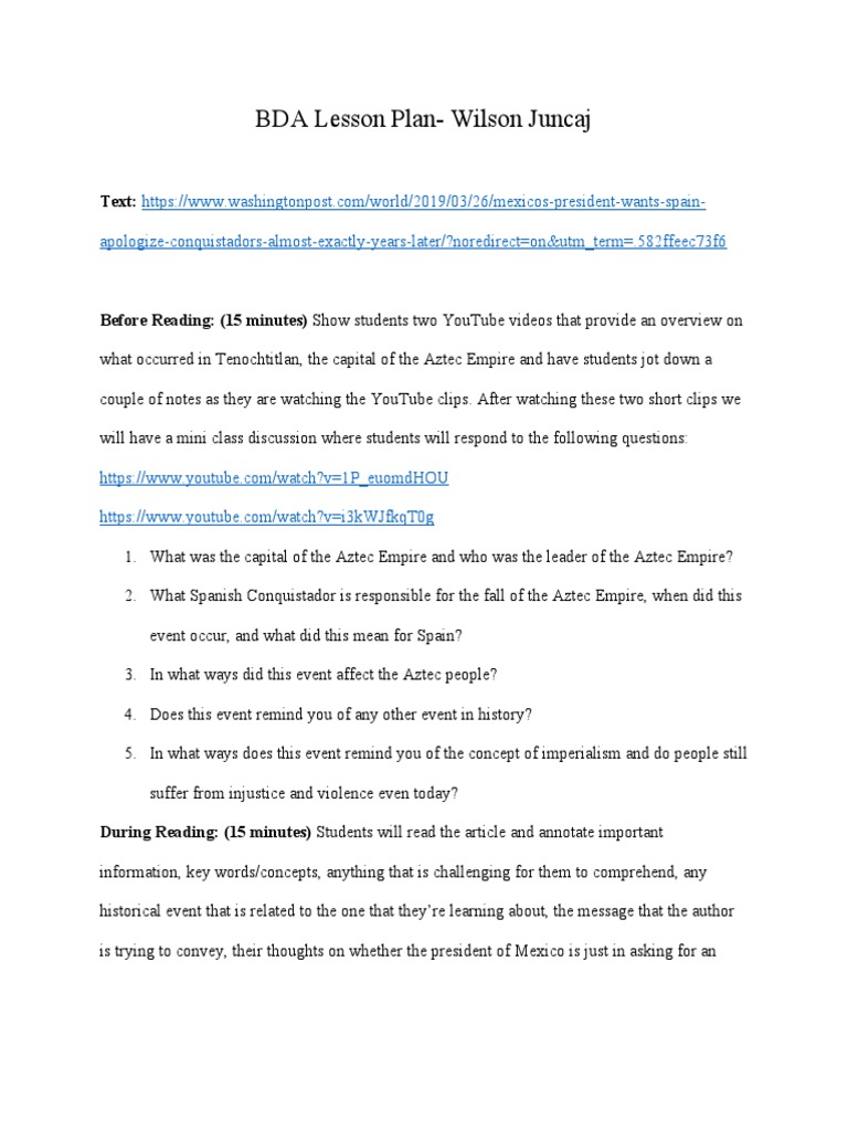 Bda Lesson Plan Wilson J PDF Cognition