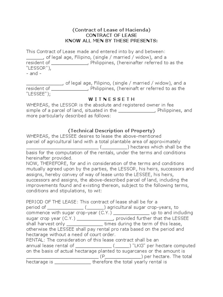 Contract for the Lease of Agricultural Land for Sugar Cane Cultivation