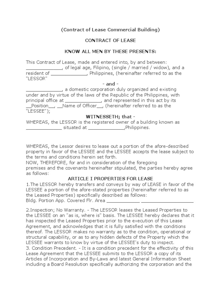 Contract of Lease Between Individual and Corporation (Template) PDF