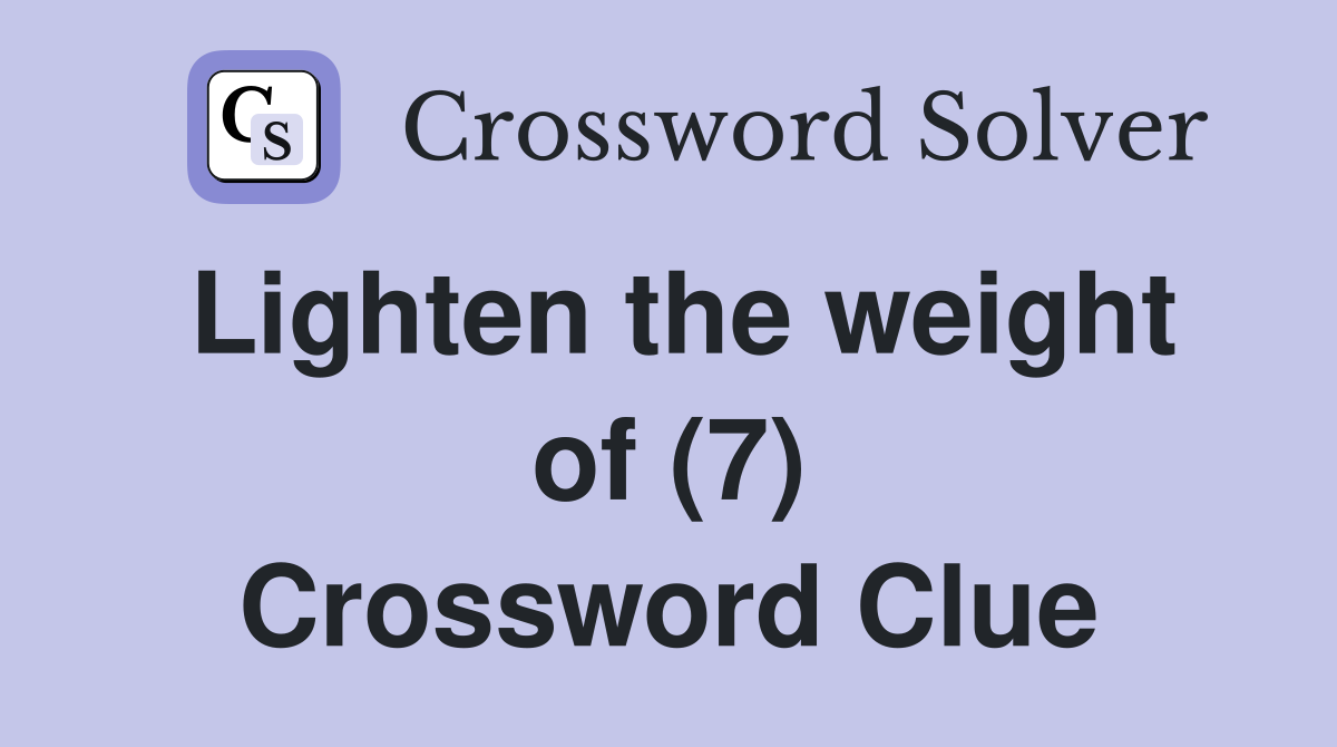 Lighten the weight of (7) Crossword Clue Answers Crossword Solver