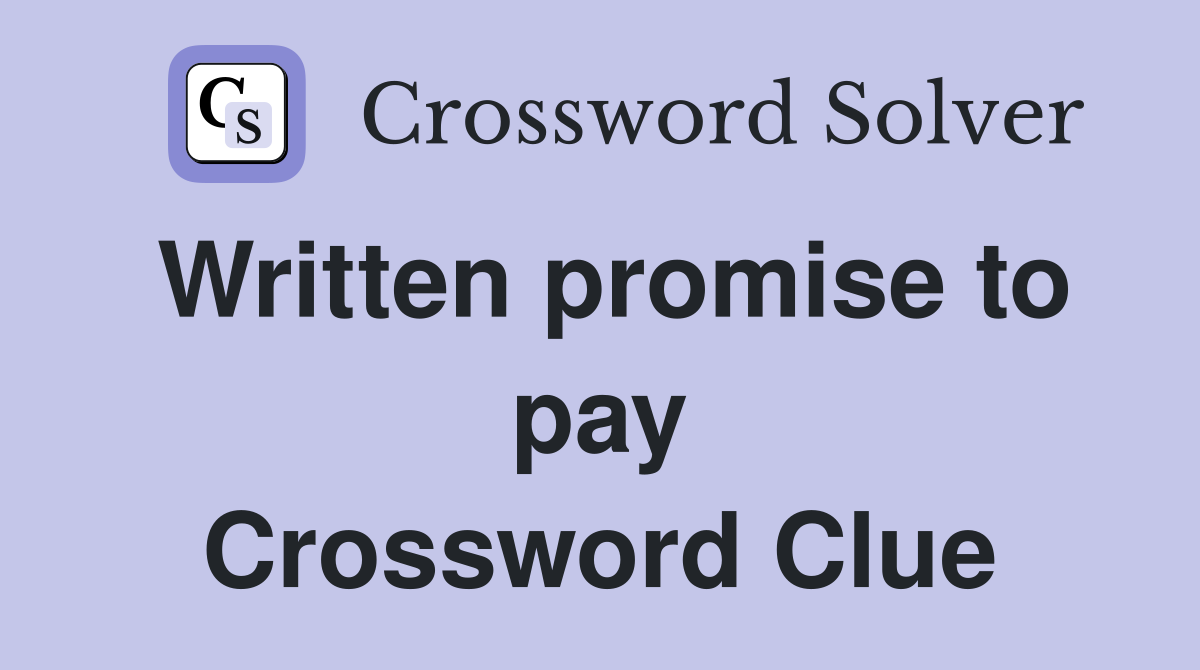 Written promise to pay Crossword Clue Answers Crossword Solver