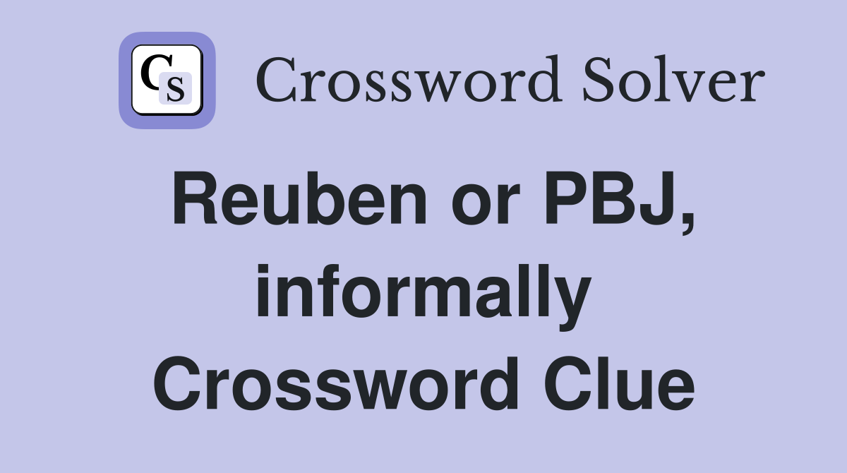 Reuben or PBJ informally Crossword Clue Answers Crossword Solver