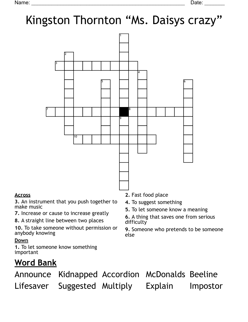 Kingston Thornton Ms Daisys crazy Crossword WordMint