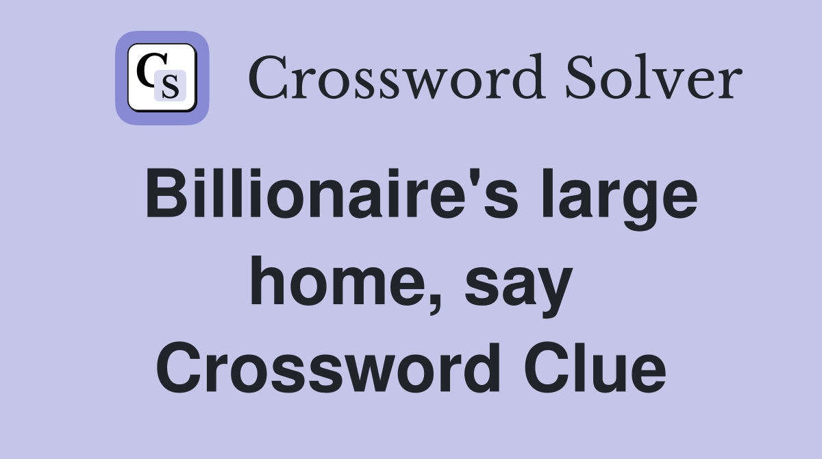 Billionaire #39 s large home say Crossword Clue Answers Crossword Solver