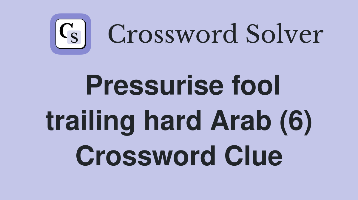 Pressurise fool trailing hard Arab (6) Crossword Clue Answers