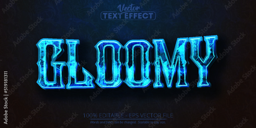 Gloomy text blue color editable text effect on dark grunge textured