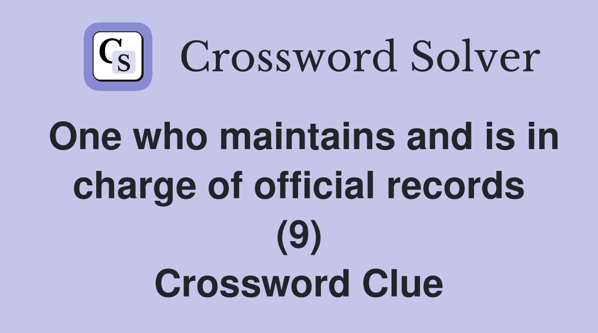 One who maintains and is in charge of official records (9) Crossword