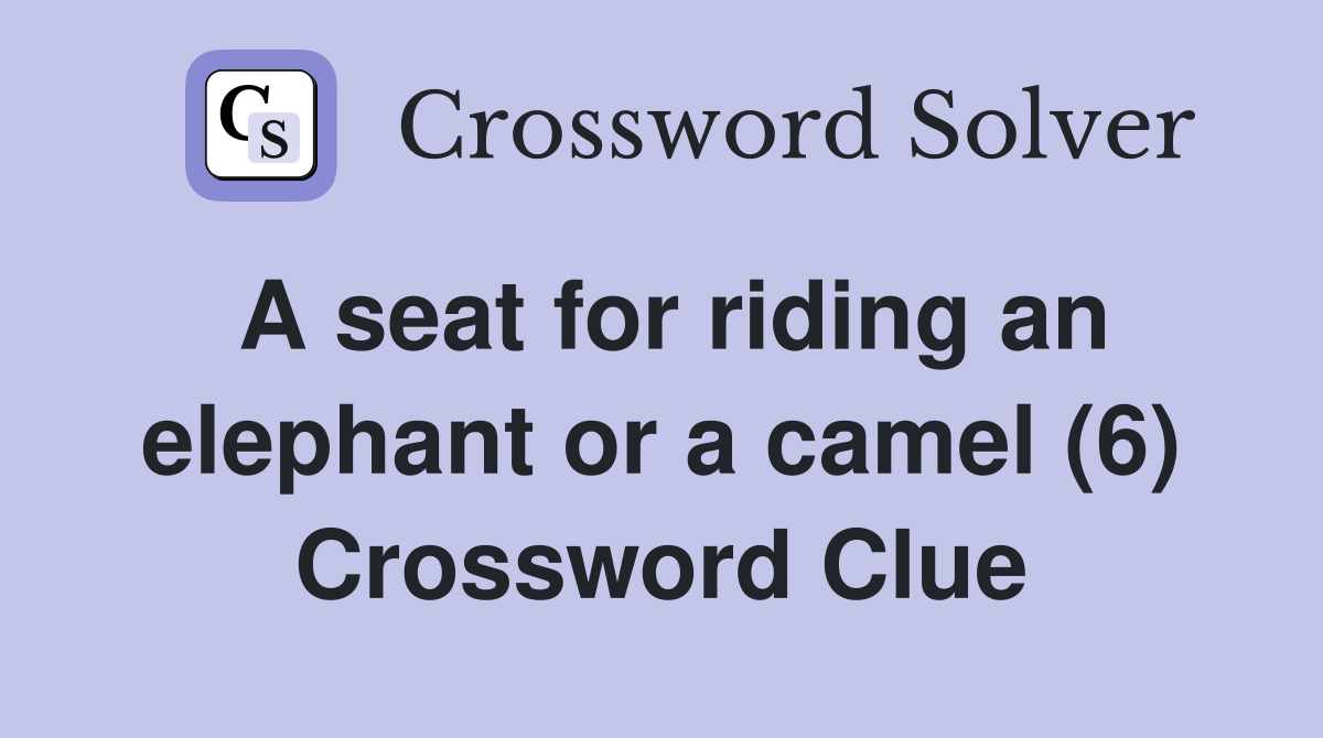 A seat for riding an elephant or a camel (6) Crossword Clue Answers
