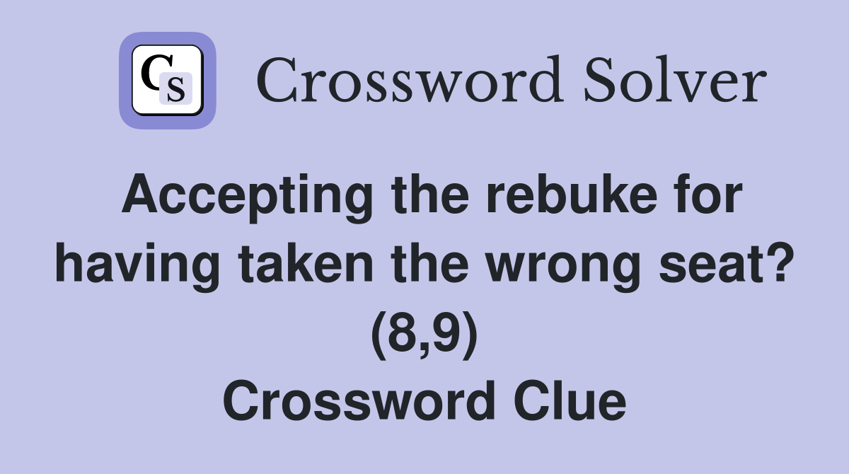 Accepting the rebuke for having taken the wrong seat? (8 9) Crossword