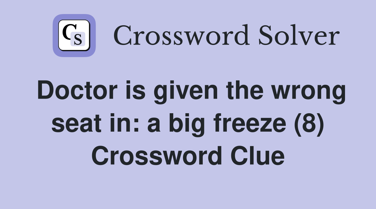 Doctor is given the wrong seat in: a big freeze (8) Crossword Clue