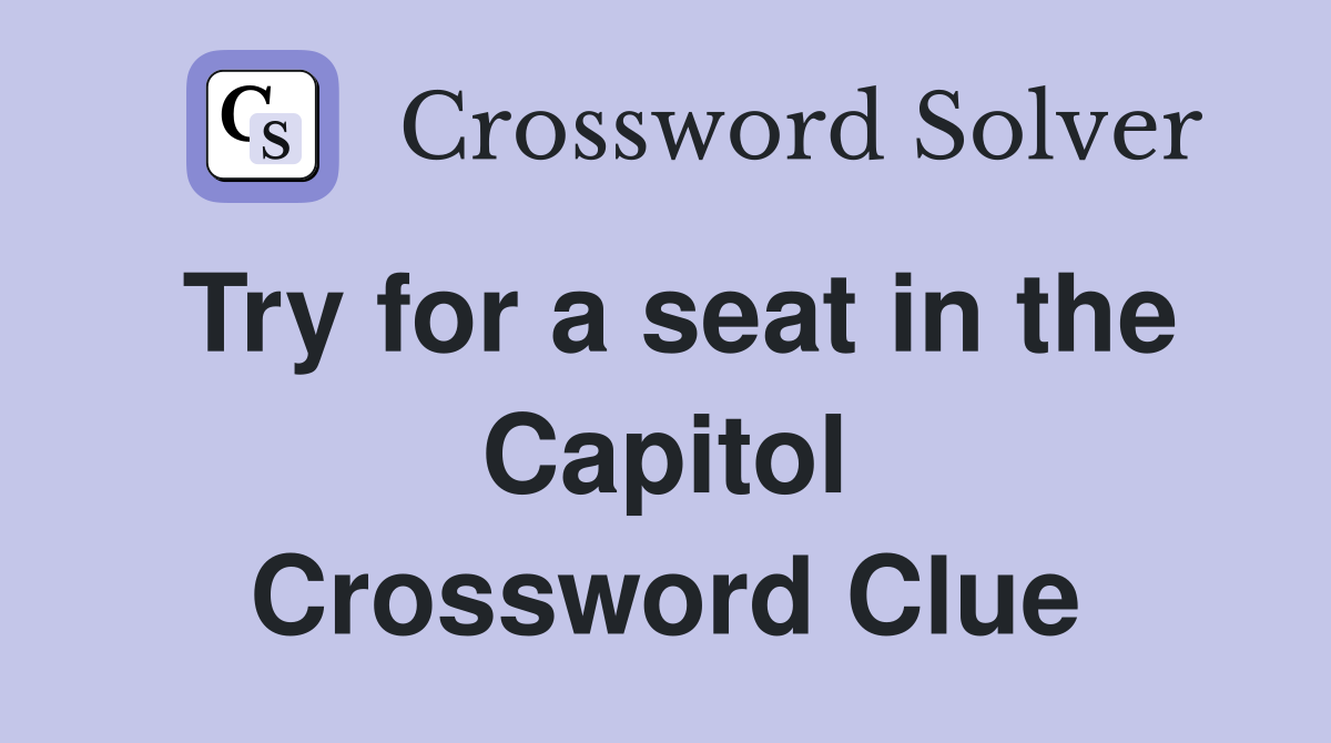 Try for a seat in the Capitol Crossword Clue Answers Crossword Solver