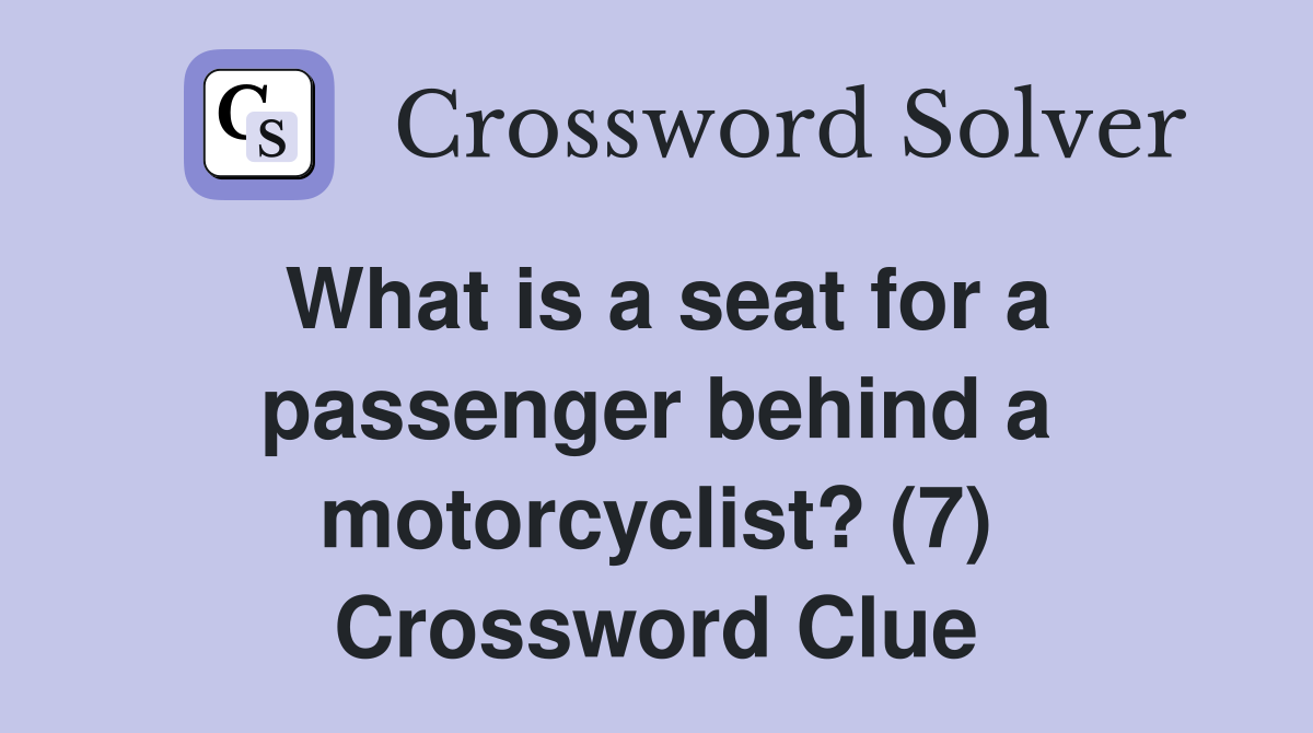 What is a seat for a passenger behind a motorcyclist? (7) Crossword